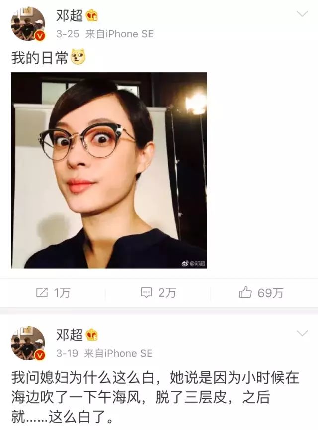 自从有了微博,邓超的形象有了180度的转变……不是搞怪就是卖蠢。