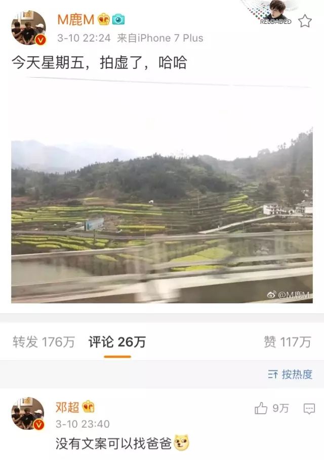 比如鹿晗,几乎每条微博下面的热门评论都有他超爸爸的一席之地。