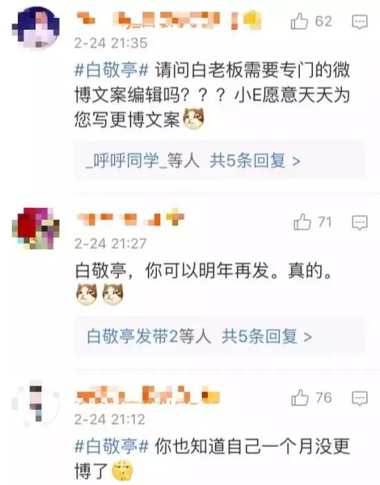 正如粉丝所说,在白敬亭的微博里抢热门不可能抢得过他本尊。