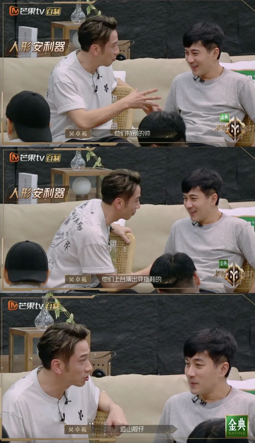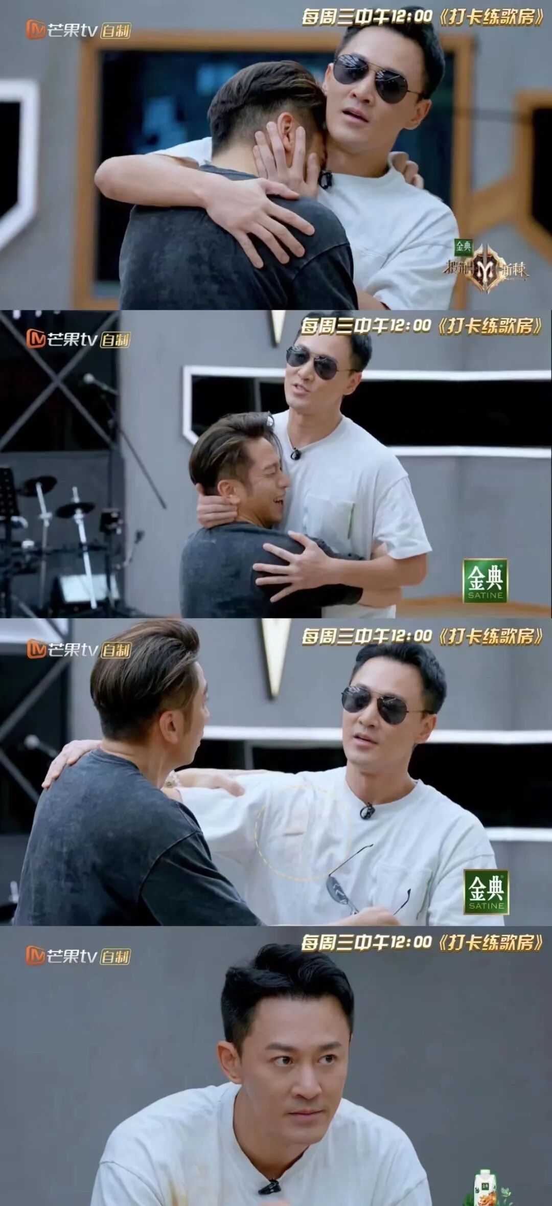 《披哥2》中,吴卓羲不仅在练歌房和任贤齐玩得不亦乐乎,在和好基友林峯演绎“昔日手足再相逢”的情景题时,更是搞怪逗趣:又是浮夸地抱着林峯哭,又是“小拳拳捶你胸口”的,最后不经意间把脸上的粉底液全都蹭到了林峯的白T恤上,喜剧效果拉满。