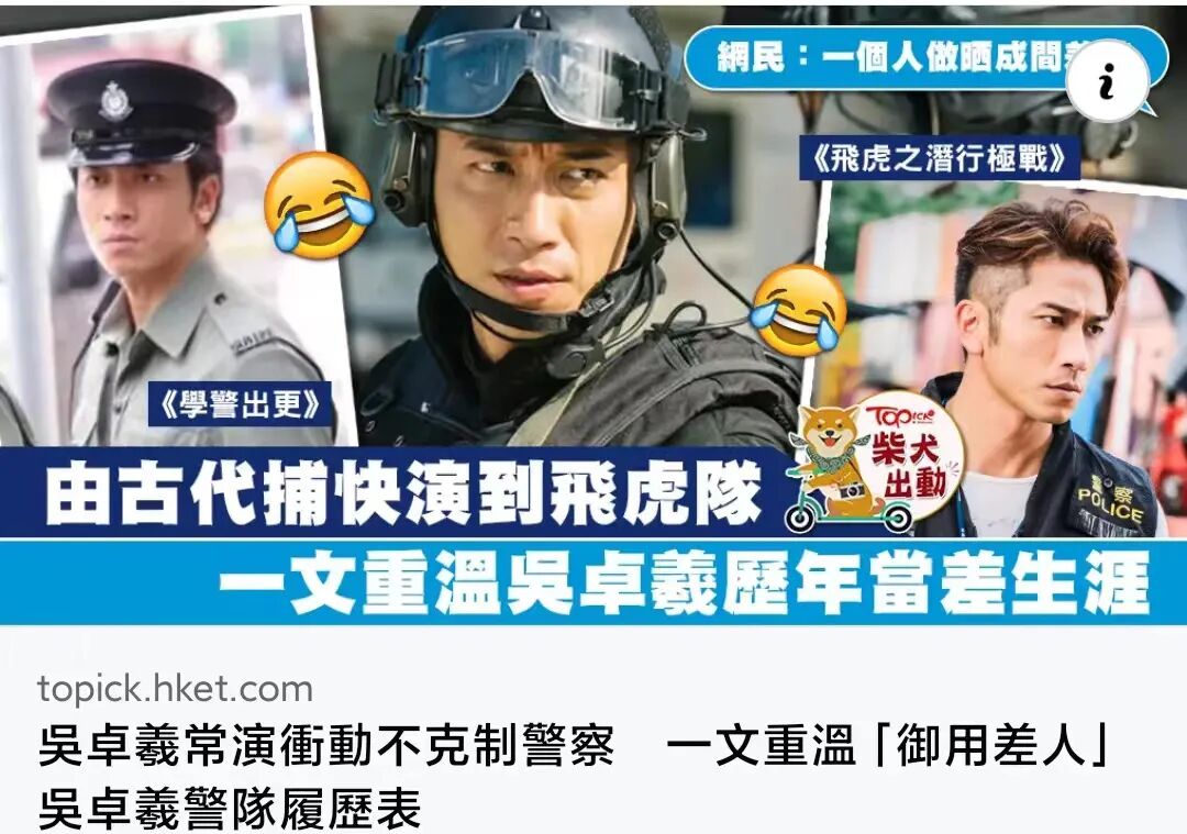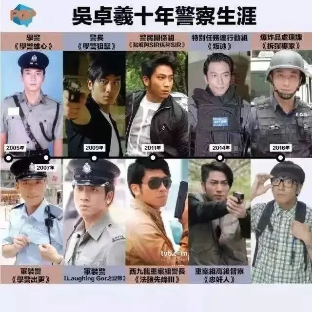 早年在TVB中,吴卓羲几乎所有的角色都是性格冲动、鲁莽缺根筋的愣头青阿sir,演这类角色的跨度直接从他的青涩时期延伸到了现在。