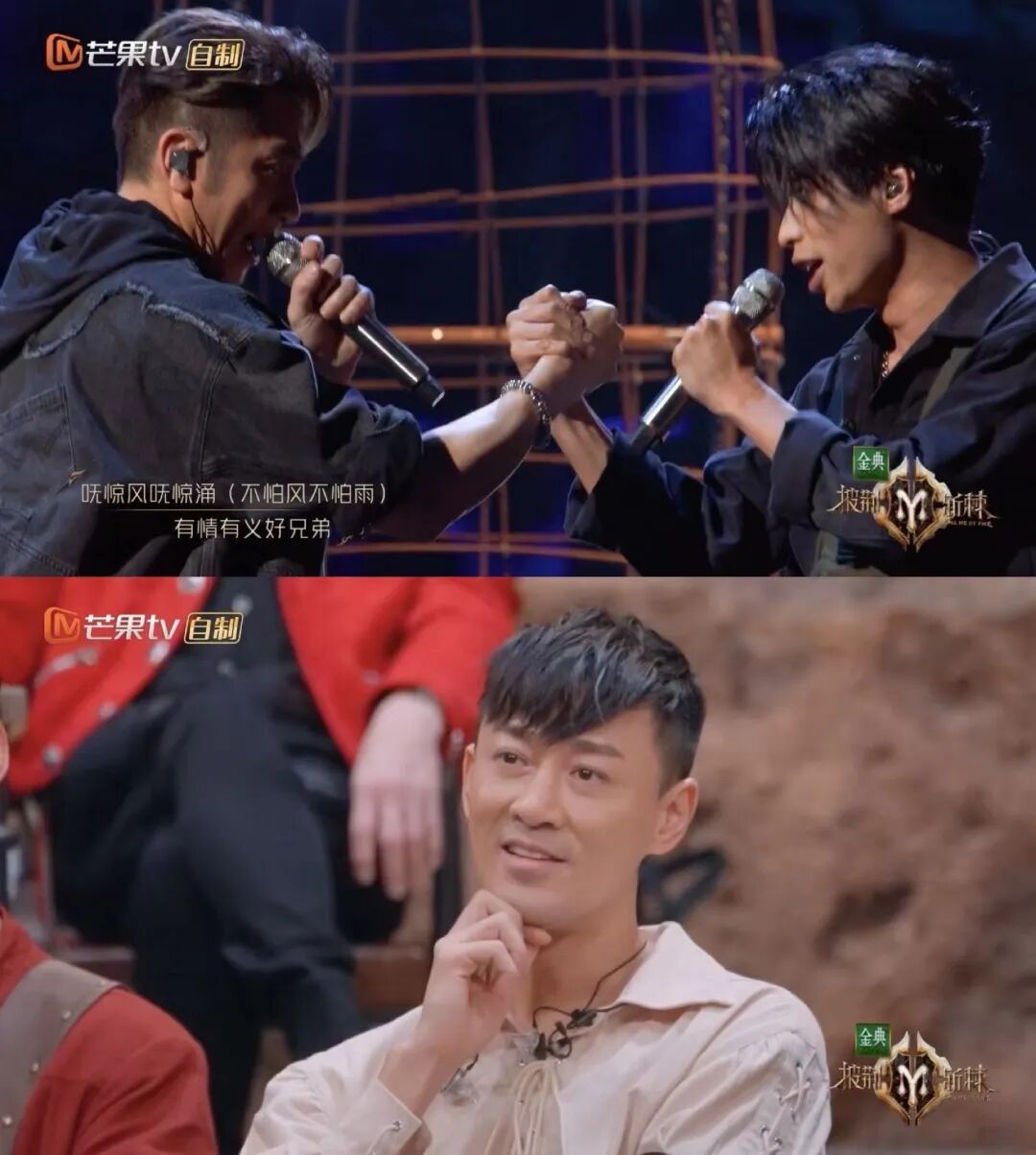 更加抓马的是一公正式表演时,舞台上的吴卓羲和仁科深情对唱到“有情有义好兄弟”这句歌词时,二人双手紧扣、双目对视,浓情蜜意之际,缺德的剪辑特意给了台下的林峯一个特写,林峯落寞的神情仿佛真的被爱人抛弃了一般,可是说是旧爱新欢的大型cp修罗场了。