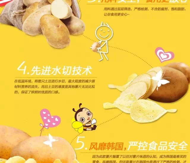 一货难求的薯片,上市110天,销售额突破103亿韩元,意味着5个人挤破头才能抢到一袋的美味哦!选用美国新鲜时令土豆,精细水切技术,加入天然香美蜂蜜与优质黄油,醇香甜美,没有品尝是真的体会不到的哦!