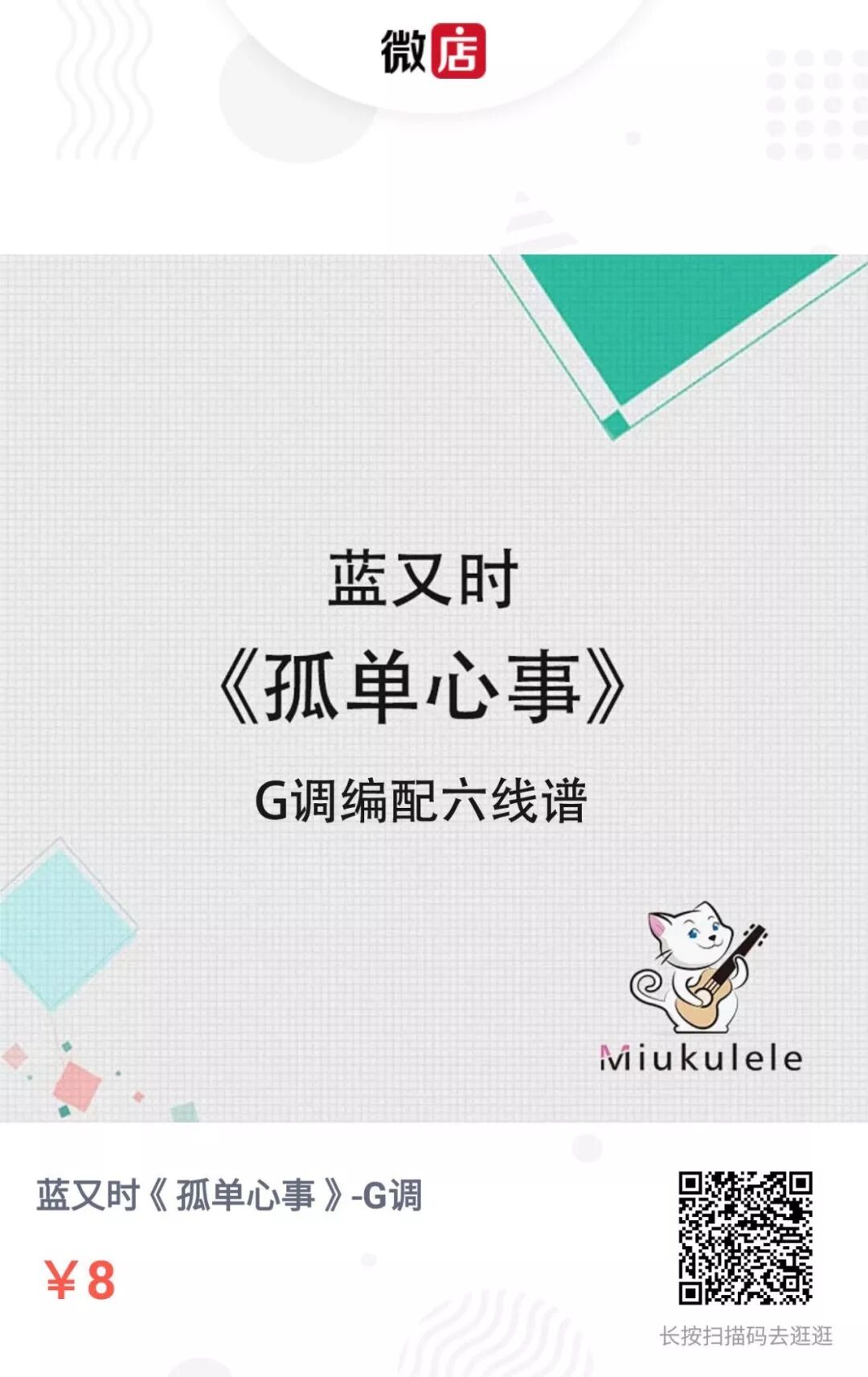 为了满足一部分人希望拥有既接近原版又难度不太高的六线谱的需求,我们特地请来我的吉他老师联合打造了这个新的六线谱收费版块。首先,我们还是会一如既往推送免费的尤克里里弹唱谱和吉他弹唱谱和大家分享,也欢迎大家继续在我们公众号留言索谱,留言多的谱子会越早更新;第二,此次新开辟的收费版块是我们一直想尝试的部分,但由于持续推送精编吉他谱需要耗费远超于我们所能承担的能力和精力,所以特地请我的吉他老师加入其中;第三,新版块的曲库会逐步更新,目前定价为8元/每首,指定曲目定制曲谱目前定价为16元/首,感兴趣的朋友可以直接通过以下链接咨询微店客服。任何意见欢迎在留言区告诉我们!比心!