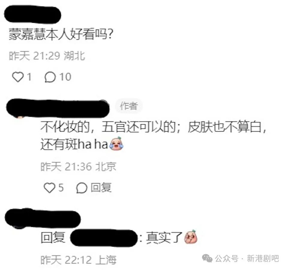 不少网民则把焦点放在蒙嘉慧的外貌上。(网上截图)
