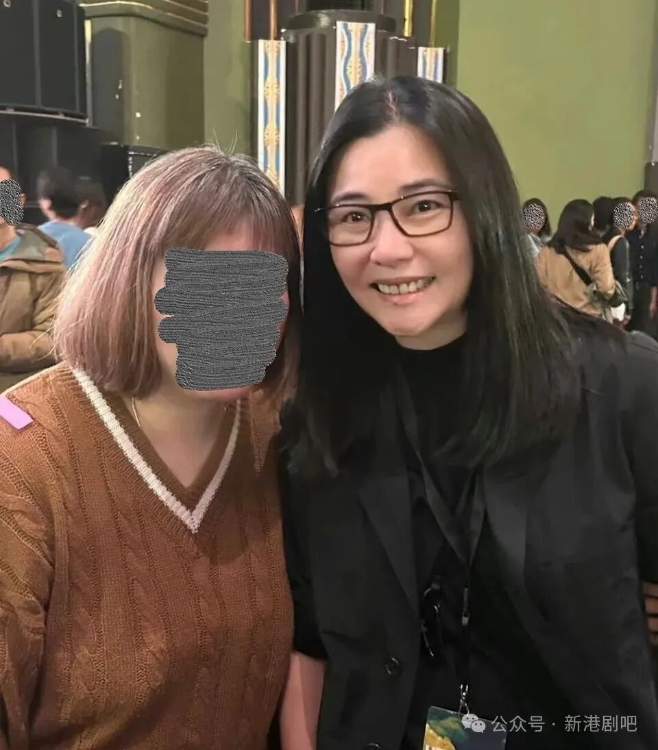 近年甚少公开曝光的蒙嘉慧亦有到场支持老公,有网民晒出合照,照片中所见,一身全黑打扮的蒙嘉慧戴上黑框眼镜,素颜出镜的她大方展露笑容,非常亲民!(小红书图片)