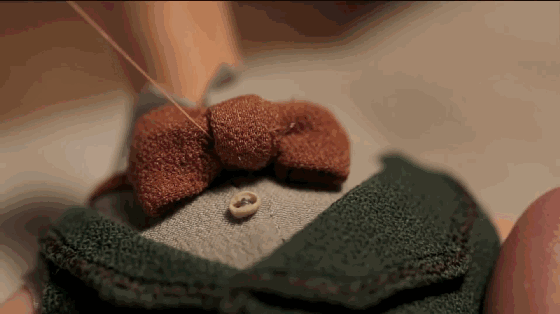 领结是一针一针地缝好的,