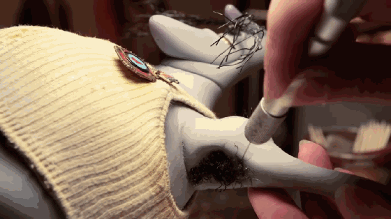 头发是一根一根地粘好的,