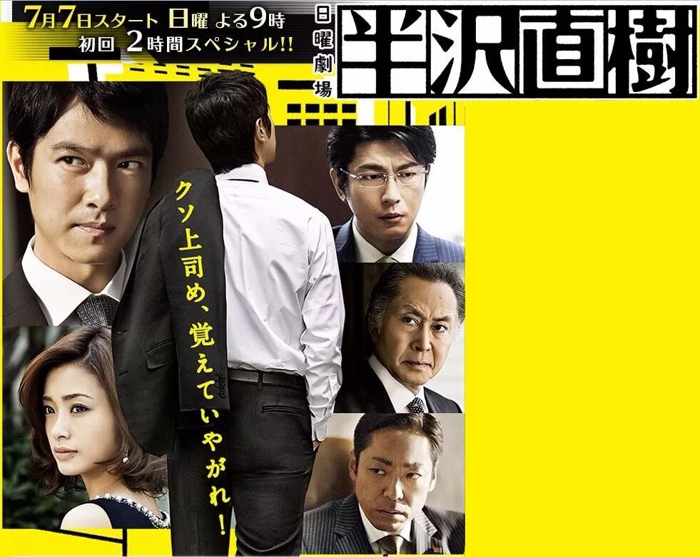 然后,堂堂正正的第一名,则是2013年播出的根据池井户润同名小说《半泽直树系列》改编的电视剧,由堺雅人扮演的主人公银行职员半泽直树,被香川照之扮演的大和田常务陷害于黑幕,两大演技派演员对决飙发的演技火花,是很多人追看这部剧的乐趣。