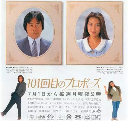 然后1991年播出的《第101次求婚》(富士电视台),1996年的《悠长假期》(富士电视台)并列第八。无论哪一部都是爱情故事的金字塔顶端的作品,尤其是后者《悠长假期》堪称伟大的电视剧,成为当时的社会现象似的高人气话题。