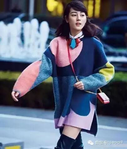 早期的她在街拍中是那么的清纯,一身拼色的针织衫,颜色结合完美恰当,很有学院风。