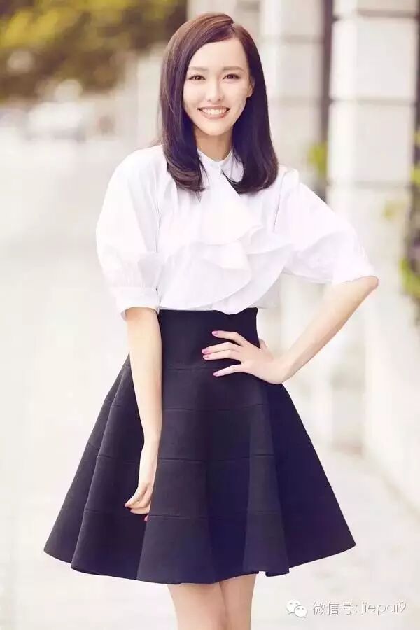 白衬衫搭配摆裙,这是很有代表唐嫣形象的搭配,很好的将她的甜美优雅体现出来。