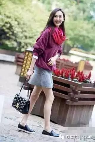 打底卫衣配上包臀裙摆裙设计微妙,穿上一双懒人鞋十分休闲优雅。