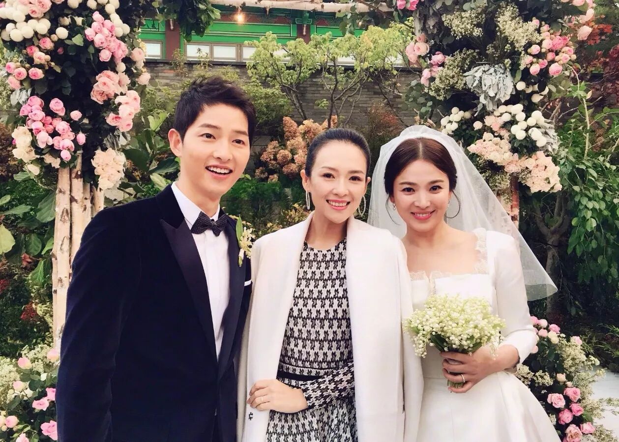 不少韩国明星都赶去捧场,EXO的都暻秀跟赵寅成担任伴郎,李光洙和刘亚仁献上贺词,宋慧乔的好友玉珠贤还唱了一首《A Whole New World》,和宋慧乔一起演过电影《一代宗师》的章子怡也去了。