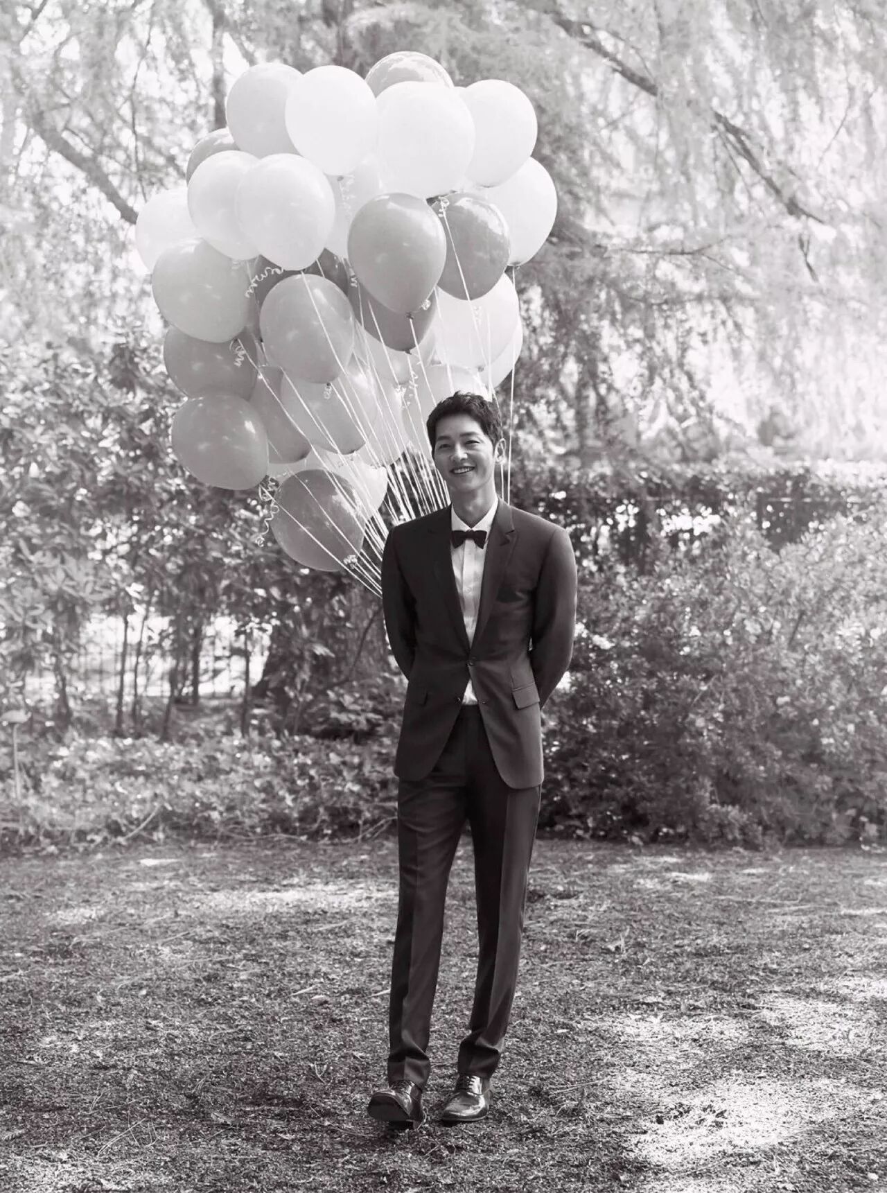 拿着气球的宋老公和韩剧里的画面一模一样,满脸挂着幸福的笑容。
