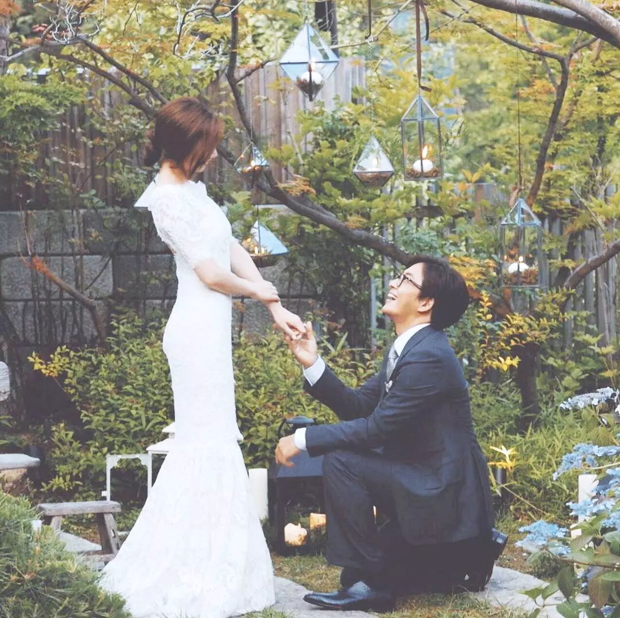 婚礼前一个月他们在日本举办了一个新婚派对,顺便连婚纱照一起拍了。