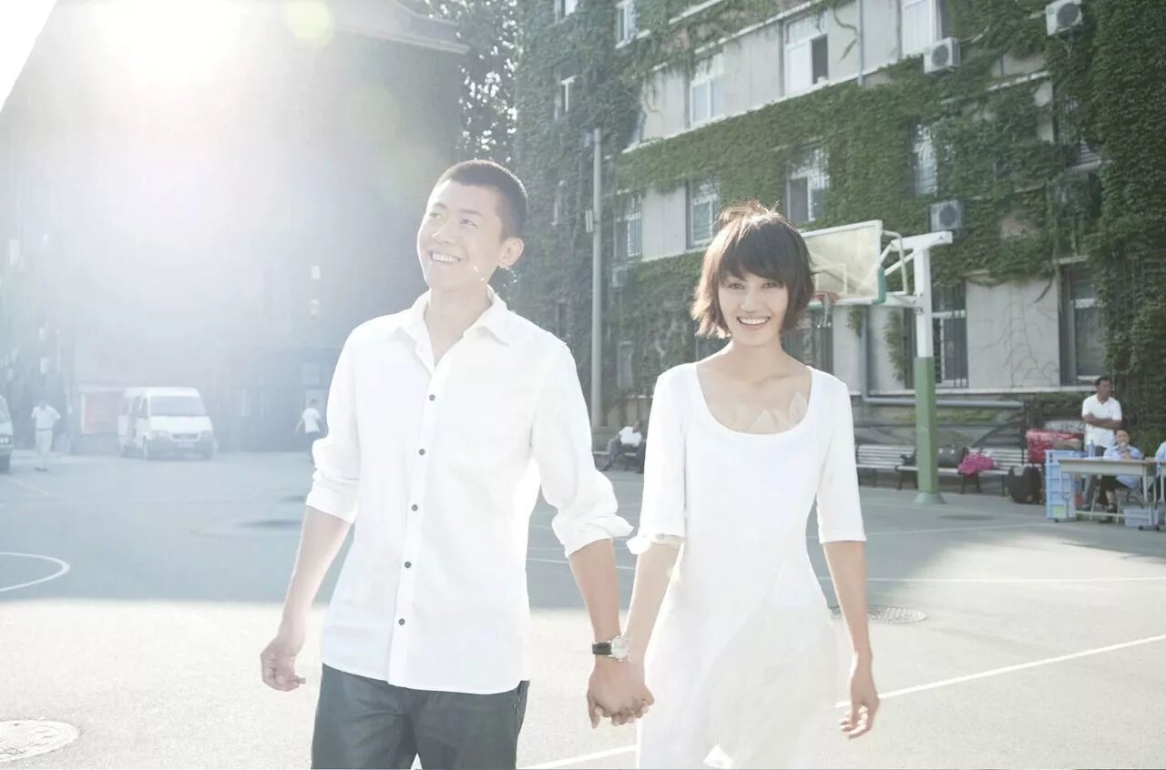 他俩超级低调,结婚时酒席只办了一桌,结婚照就穿着最简单的白T恤和白衬衫,很清纯很自然。