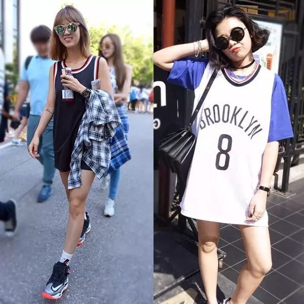 刚过臀部的宽松肥大的上衣,对于微胖的女生来说,简直就是遮肉利器。