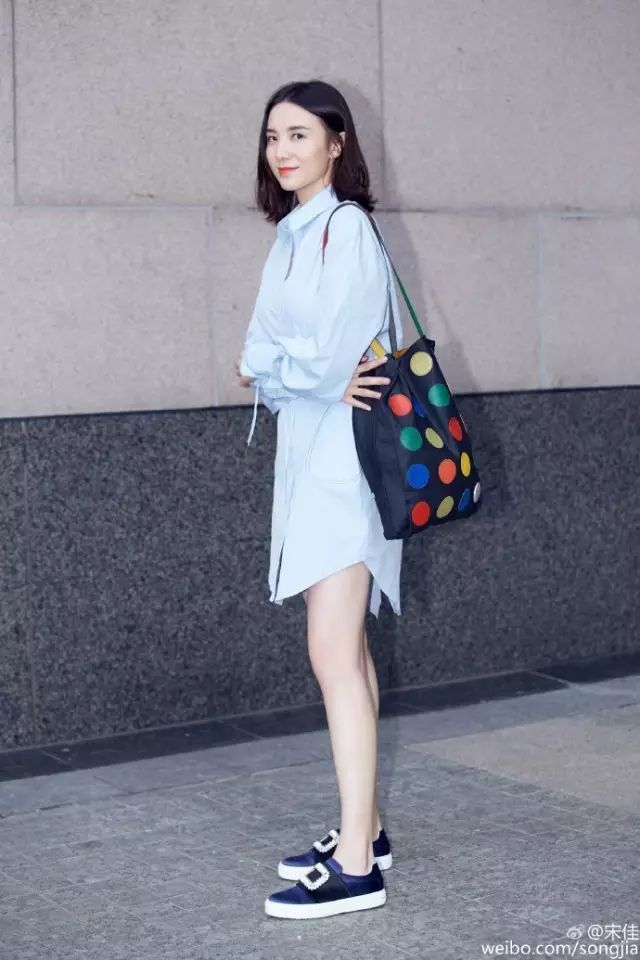 宋佳作为国内最会穿衣的女星,一身衬衫裙显露大长腿,厉害之处就是无论什么衣服,总是可以找到相衬的鞋子来搭配。
