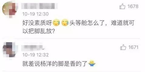 其次,说杨洋蹬的是墙不是座位,也有点开脱的意思。座位或墙根本不影响,重点是脚没放对地方,会把环境弄脏啊。所以希望粉丝不要再说什么“这个动作很正常”了、“头等舱是可以这么做的”,往大了说这可是典型的双标!