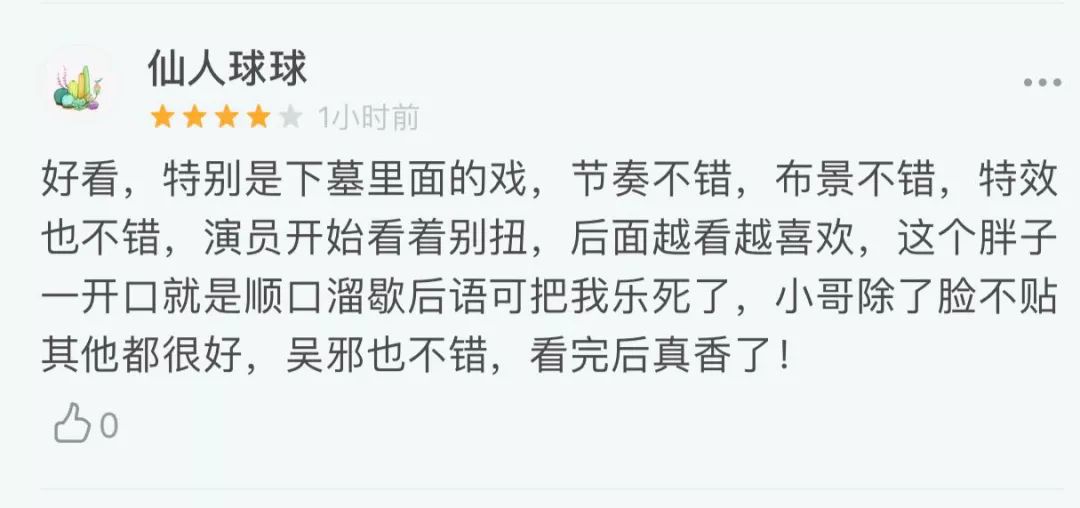 《怒海潜沙&秦岭神树》一开始也同样不被观众看好,不过随着剧情播出,高还原的原著情节、精良的特效、用心的道具和符合原著人设的演员们让此剧渐入佳境,最终意外收获了不错的口碑,还被书粉称赞为“原著粉福利”!
