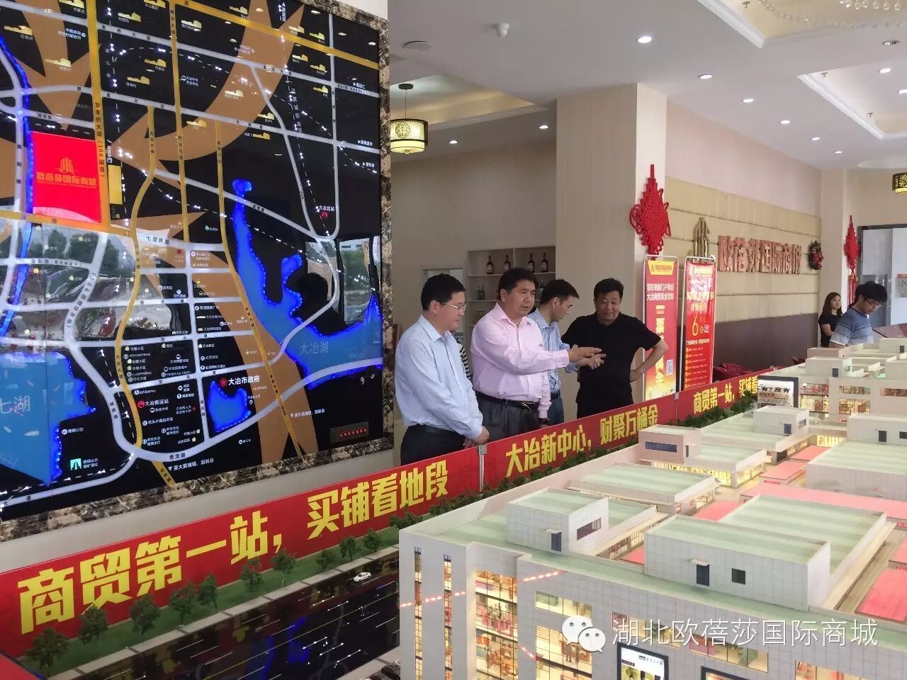 领导一行人对欧蓓莎国际商城的现有工作给予充分肯定的同时,也对公司日后的发展提出了自己宝贵的意见和建议,作为政府重点项目,领导要求公司今后进一步加强招商工作,将平台负责到底,带动大冶乃至鄂东地区的经济发展。而欧蓓莎国际商城也将不负使命,努力为大冶创建一个顶级商贸平台。