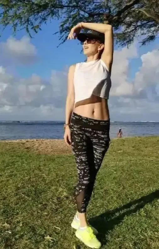 白色一件无袖的衣服非常的性感,马甲线现在出来了之后也是更漂亮了。坚持下去的话应该会更瘦了,而且紧身裙穿起来就不会有那么多的赘肉了。皮肤也保养的还是很好的。