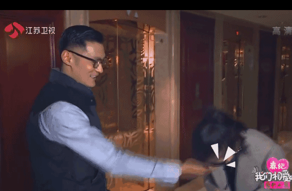 在周冬雨蒙着眼睛出电梯的时候摸她的鼻子逗她,真调皮~
