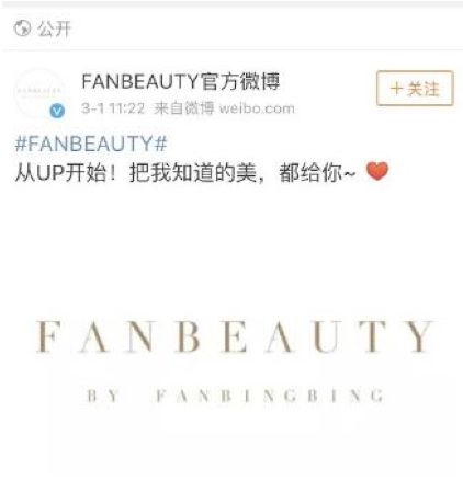 前阵子她疯狂入住某平台推荐自己的护肤和美妆用品是有目的的,先博吸引力,昨天她自创的美妆品牌官方认证微博已经开了。自创的品牌名叫“fanbeauty”,很直白。