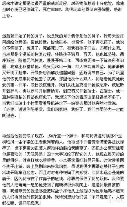 刘涛没精力解释,因为老公正处于生死边缘。承受不住打击与背叛的王珂,药物成瘾,每日吃各种安眠药镇痛药200余片,甚至在妻子生产时昏厥,心脏停跳,差点死掉……