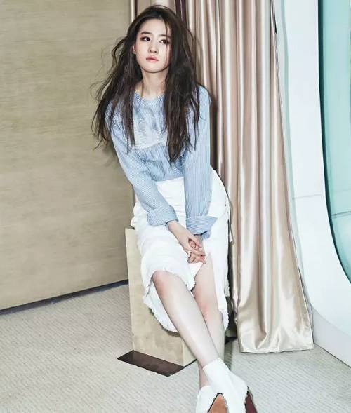 >>>蓝白竖条纹衬衫裙配经典运动鞋,再配一件披肩,在蓝天白云的风景中轻松惬意。喜欢文艺风、时尚与舒适,小清新风的女孩完全可以copy倪妮的私服搭配。