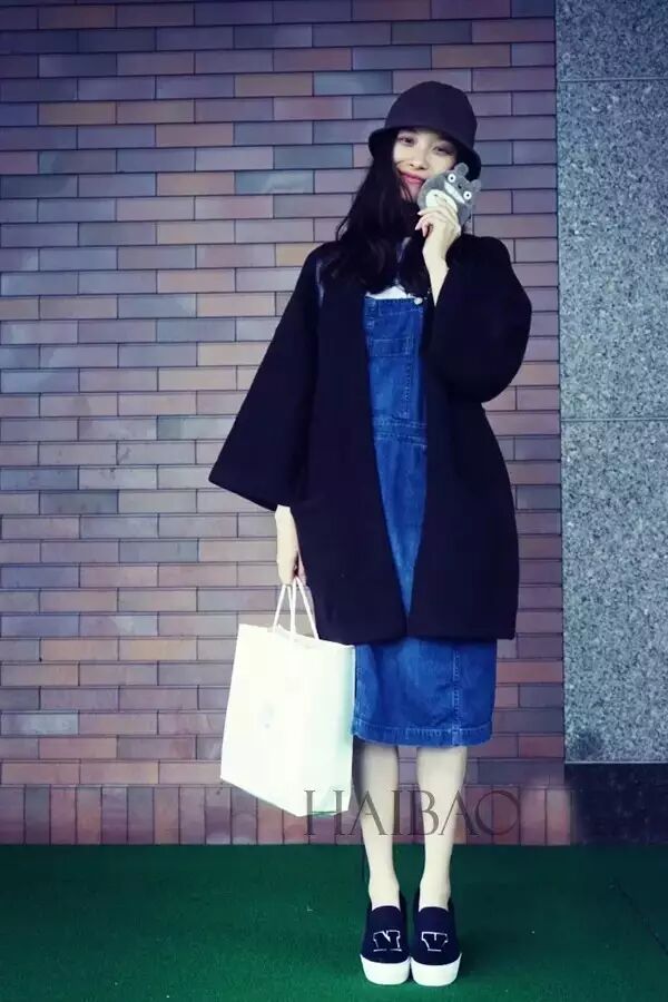 >>>蓝色长款丹宁背带裤走走活泼少女风.套上开衫,这个天气穿上刚刚好