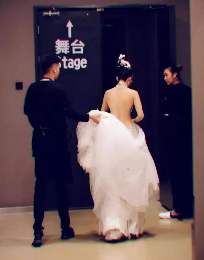 照片里的她身穿演出服,正朝舞台走去,纤细的美背、曲线流畅的腰肢,宛如20岁的妙龄少女。