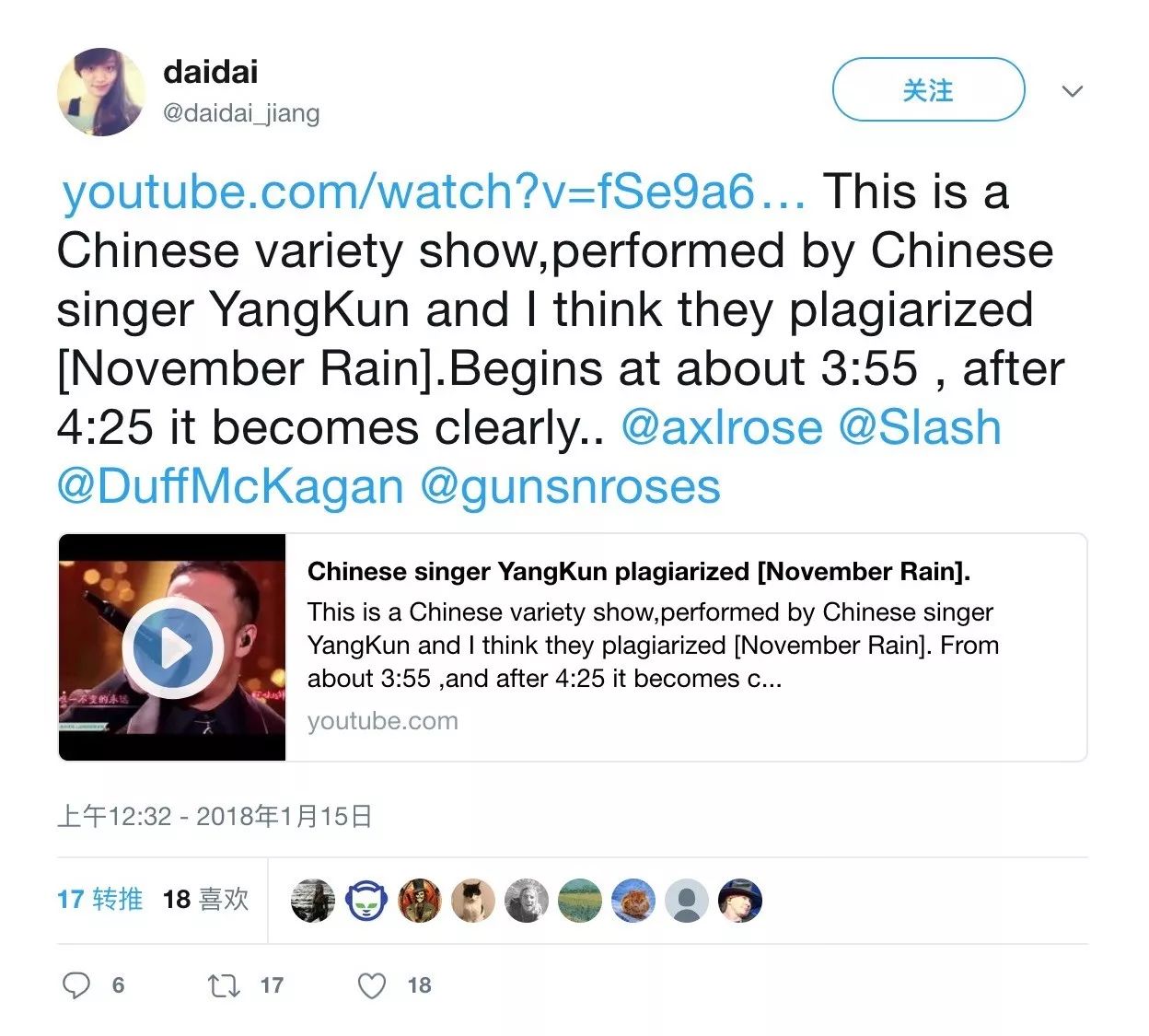 国内丢人也就算了,这次杨坤抄袭的视频还被曝在了推特上,引得一众外国网友围观!