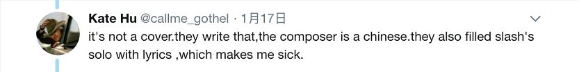 节目播出后,很快就用网友指出,这歌抄袭Guns N' Roses的《November Rain》。