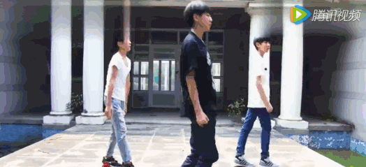 黑色花背心配紧身裤,舞蹈整齐但缺乏力度,好在青春逼人元气满分,即使土,也挡不住帅啊!
