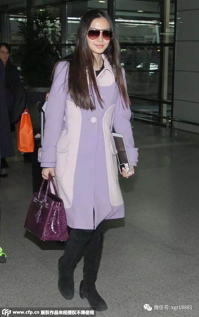 Angelababy酷爱Hermes ,光是近60万爱马仕鳄鱼皮铂金包就不止一个,高贵优雅的包包配女神,大牌范十足。