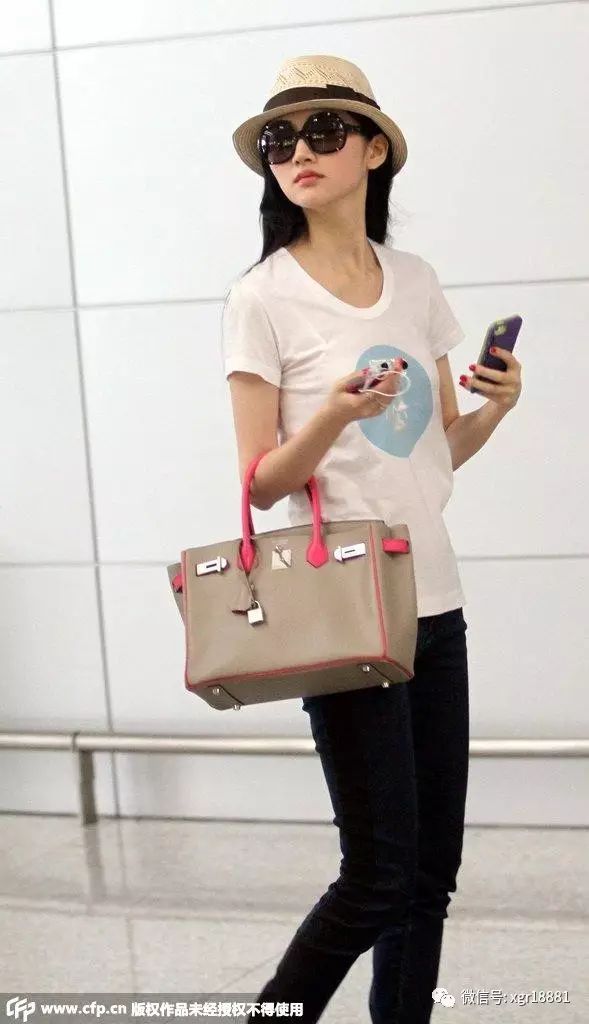 赵薇出街有很多种铂金包,在她拥有的数个爱马仕包包里竟有两款是限量的拼接Birkin包,哪怕是搭配简单的外衣牛仔裤,包包都为她增色不少,真是一款吸人眼球的奢侈单品。