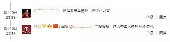 耿直girl马苏已给出明确回复“搞啥搞,作为中国人得冠军激动啊。”