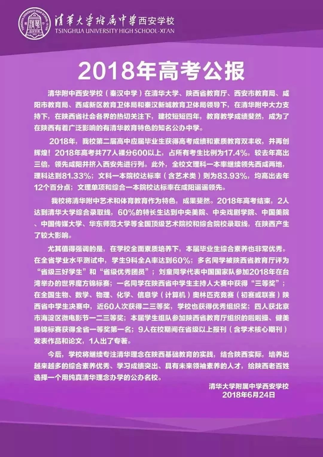 5、问:清华附中西安学校(秦汉中学)2018届(第二届)毕业生都取得了哪些瞩目的成绩?