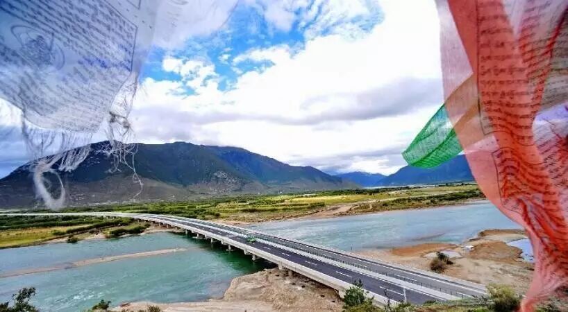 清晨我们沿着拉萨河开始了风景大宴。出了拉萨路旁一直伴着拉萨河,看着河面由宽到窄,绿绿的水,晶莹的冰,不知不觉,耳膜鼓起,你会感受到海拔在上升,是的!正在翻越米拉山口,站在山口,山风劲吹,蓝天白云下,五彩经幡在大地与苍穹之间飘荡摇曳,连地接天,将藏民们虔诚的愿望传达上苍神灵。