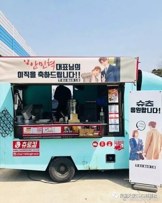 演员朴炯植今日在INS晒出了朴宝英送来剧组《金装律师Suits》的咖啡车