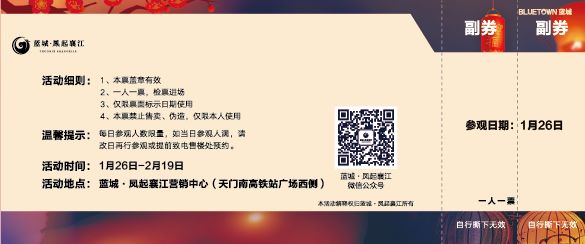 关注凤起襄江微信公众号,转发推文至朋友圈,并配文“我要去蓝城·凤起襄江看灯会!”,集满18个赞后即可领取价值388元的新年灯会门票一张。