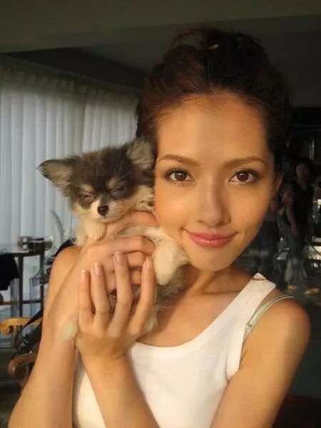 说起S.H.E,这三位好姐妹可都是狗狗迷哦,而且呀,连关系都会传染的。三姐妹感情好,连养的宠物们感情也是非常的好哦。下图是Hebe跟她的小狗狗哦。