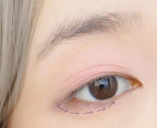 第四步:用圆头眼影刷画下眼影,注意边缘自然,颜色是棕色眼影。