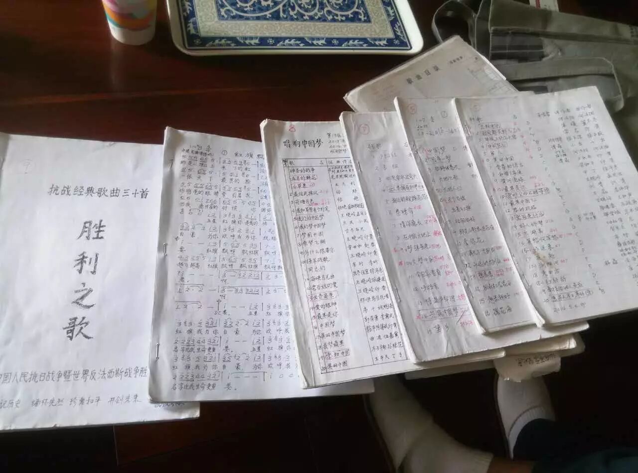 (这是老兵张远整理的抗战歌曲集,字迹工整,条目清晰,令人佩服。)