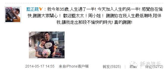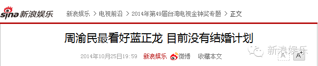 至此蓝正龙结了婚、有了娃、办了婚宴。突然想起一条新闻,周渝民说最看好蓝正龙,然而他自己并没有结婚计划。
