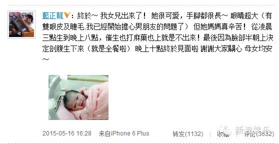 一年后女儿“小篮球”出生。感觉蓝正龙有种不谈则以一谈结婚生子全拿下的气势,还是年龄让他有了危机感?哈哈~