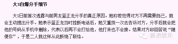 版本三:大s当初自曝的分手细节,说是蓝正龙当时挂断电话,对方不需要自己就会分开。