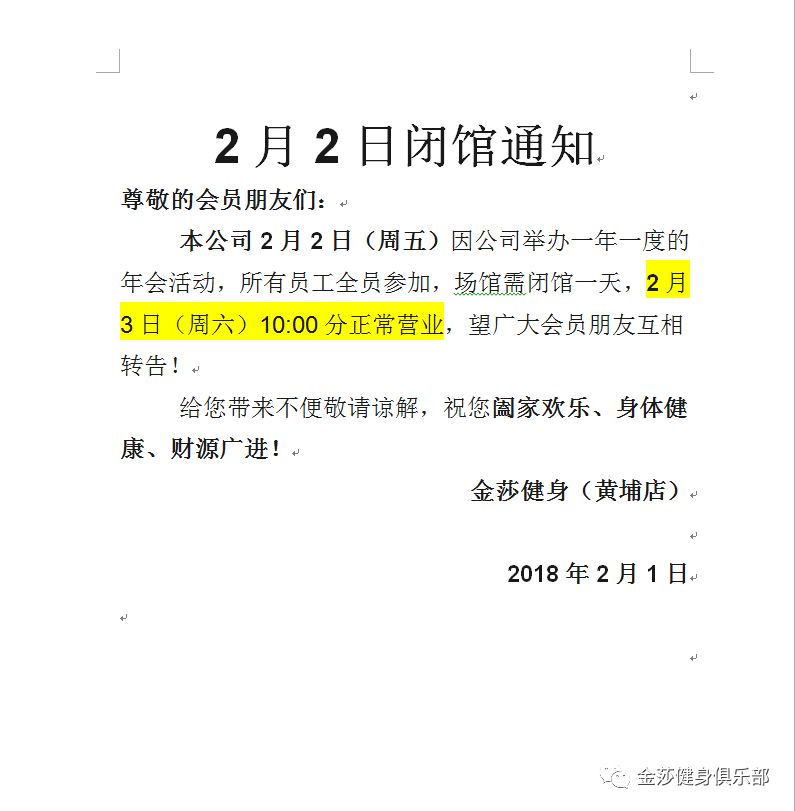 金莎健身(黄埔店)2月2日闭馆一天 金莎健身俱乐部 内地女星 2018-02-01 18:18:17 464 创作不易,用心坚持,欢迎请BaGua喝几杯爱心咖啡!打赏并支持本文 打赏并删除本文 亲爱的会员朋友们;金莎健身【黄埔店】全新升级,全新体验。金莎健身承诺会尽力的给各位会员一个更好的健身时间规划,感谢大家的理解与支持。金莎健身祝您健身愉快! 注:建议上瑜伽课的会员,请您提前十分钟或准时进场,如已上课,请勿入场,谢谢!信公众号:金莎健身俱乐部黄埔店地址:黄埔区大沙地地铁5号线C出口金莎健身黄埔店咨询电话:020-22302122 创作不易,用心坚持,欢迎请BaGua喝几杯爱心咖啡!打赏并支持本文 打赏并删除本文 感谢您的支持鼓励,我会继续努力的!文章地址:用户邮箱:打赏金额:USDT 请输入数字点击”去打赏“,即可进行打赏支持本文章哦 金莎 About the Author 金莎健身俱乐部 功能介绍:新春送健康,金莎传真情.金莎健身新年巨惠,全民健身低至每月100元.亲--2015年是时候改变自己了! 官方认证:广州市黄埔区金莎健身馆 Related Posts 金莎健身(黄埔店)春节放假通知 2019-01-17 17:15:29 金莎健身(黄埔店)11月份最新课表 2018-10-30 20:46:26 金莎健身(黄埔店)10月9日-20日最新课表 2018-10-09 16:52:14 金莎健身(黄埔店)8月16日-8月31日最新课表 2018-08-15 21:09:07 金莎健身(黄埔店)8月将力推 维密体雕活力带 2018-07-29 16:34:06 发表评论